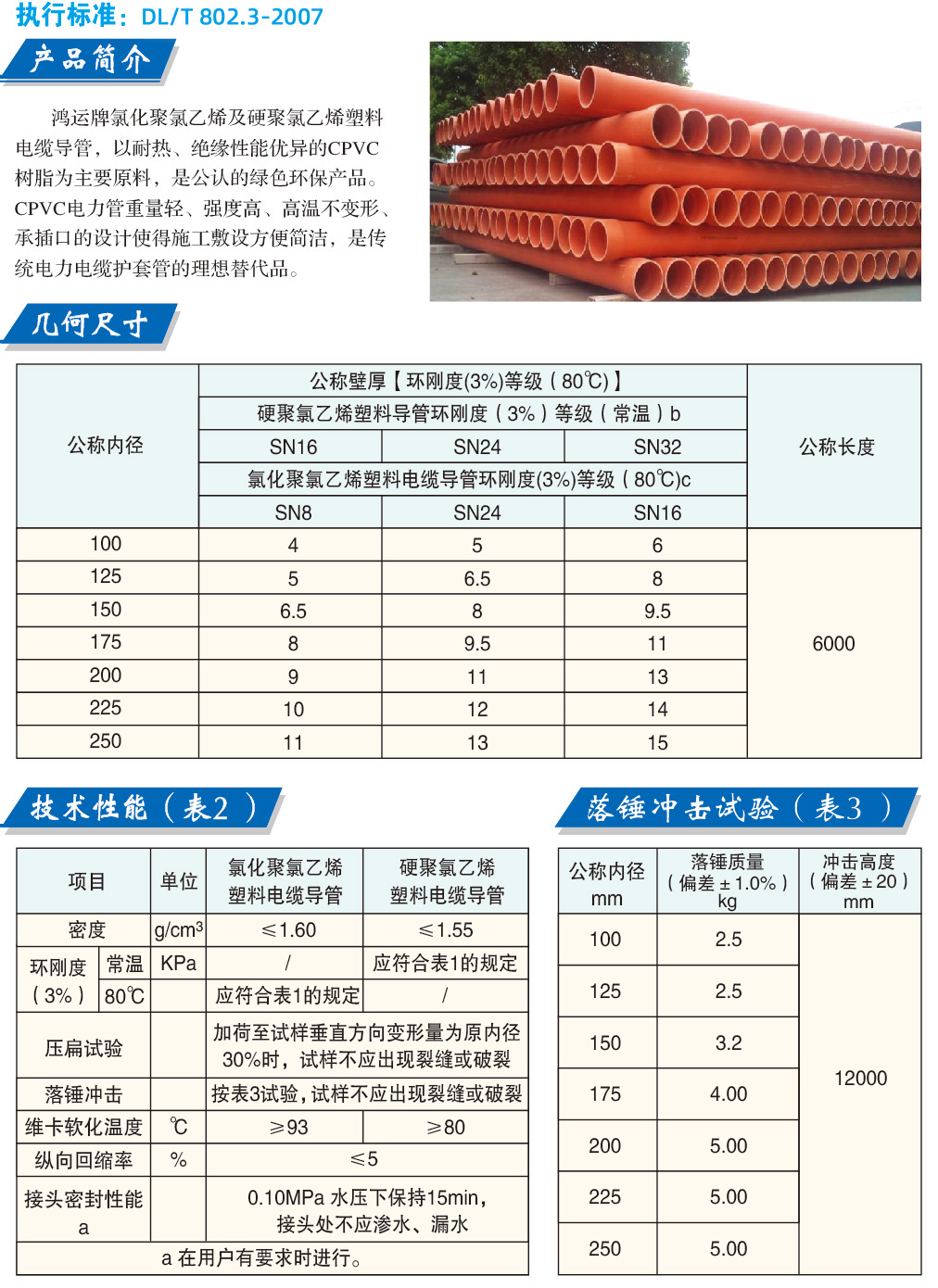 CPVC氯化聚氯乙烯及硬聚氯乙烯电缆导管