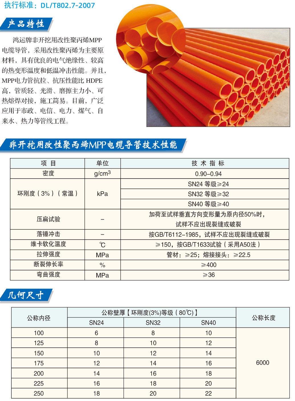 非开挖用改性聚丙烯MPP电缆导管